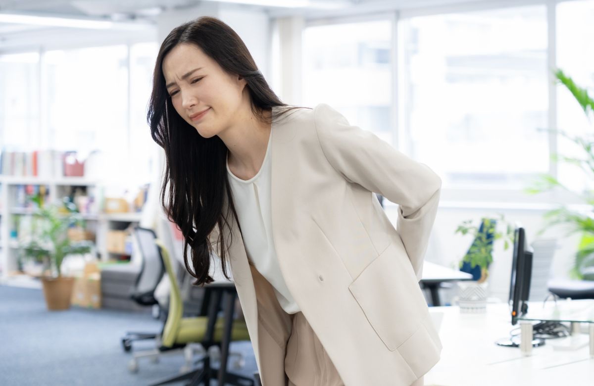 腰痛の原因はさまざまですが、多くみられるのは日常生活における筋肉や関節への負担。長時間のデスクワークや同じ姿勢の継続、運動不足、無理な動作などが重なると、腰回りの筋肉や関節に影響し、痛みが起こりやすくなります。また、ストレスによる身体の緊張、加齢による筋力の低下なども、腰痛の一因とされています。